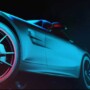 Close-up, low-angle view of the rear side of a sleek, modern sports car with dramatic blue and red lighting, highlighting its wheel, brake disc, and smooth metallic body—a true reflection of cutting-edge design and automation strategies.